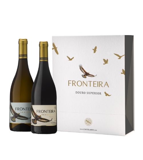 A elegância da gama Fronteira Reserva, agora disponível em formato duplo, Tinto e Branco, ambos em garrafa de 75 cl, elegantemente acondicionados numa caixa de cartão premium, ideal para oferecer ou desfrutar em momentos especiais.
